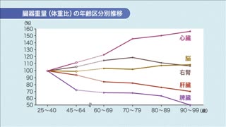 老化とは何か(4つの力の低下、生理的老化、病的老化)について触れ、感覚系では、視覚の変化(老視、白内障)、聴覚・平衡感覚の変化(難聴など)、運動系では、骨の変化(骨量、骨粗しょう症など)、関節・筋の変化(変形性関節症、サルコペニアなど)、神経系では、神経細胞の変化やアルツハイマー型認知症などについて解説します。
