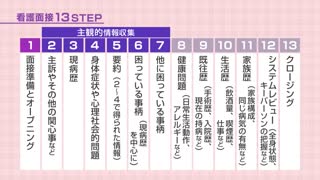 看護学部3年生の藤本加奈さんは、成人看護学実習で脳出血後、回復期にある患者さんを担当することになりました。この動画では、看護面接13STEPからSTEP1オープニング、STEP2~4主観的情、STEP13クロージングの場面を取り上げて、質問技法、促進の技法、積極的傾聴といった基礎的なコミュニケーションの技法や態度を説明します。