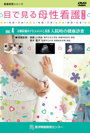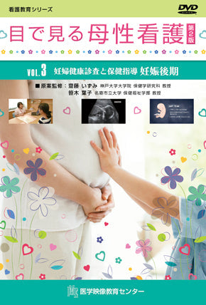 妊娠36週をむかえた妊婦の事例です。妊娠後期に行われる妊婦健康診査、レオポルド触診法、胎児心音の聴診、腹囲・子宮底長の計測、ノンストレステスト(NST)、分娩前後の準備への保健指導について解説しています。第2版の腹部の診察、ノンストレステストは、実際の妊婦の映像を使用し、妊婦健康診査の様子をより具体的にイメージできるようにしています。