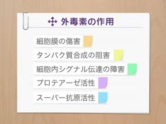 細菌感染の成立、病原性(外毒素、内毒素)、免疫系からの回避(細胞内寄生、相変異など)について説明し、代表的な細菌感染症と病原菌(肺炎球菌、カンピロバクター、腸管出血性大腸菌など)、話題の耐性菌(MRSA、MDRP、β-ラクタマーゼ産生菌)などについて解説します。