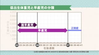 早産児、低出生体重児の分類と特徴、起こり易い疾患(呼吸窮迫症候群、動脈管開存症、脳室周囲白質軟化症、脳室内出血、新生児壊死性腸炎)について解説します。また新生児に行われる検査・処置、ディベロップメンタルケアについて説明します。