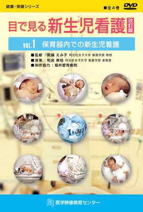 大きく進歩した早産児や低出生体重児のケアの現状に合わせて、Vol.1、Vol.2が改訂版となりました。Vol.1「保育器内での新生児看護」は、前作のVol.1、Vol.2から重要な内容をピックアップした密度の濃い番組にリニューアル。また新しい保育器の映像を追加しています。Vol.2「新生児の異常とディベロップメンタルケア」は、前作には収載されていない新生児の異常や検査、及びディベロップメンタルケアを取り上げた新番組です。[Vol.01] 【改訂版】保育器内での新生児看護