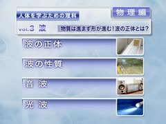 生物、化学、物理はわたしたちの身体や生活を理解するのに大切な学問です。本シリーズでは、高校までに履修する生物、化学、物理の中から、人体に関係する内容を中心に、わかりやすく映像化しました。生物、化学、物理を選択せずに医療系、健康科学系などの学校に進学した学生、履修したけれども再学習したい学生が基礎から理解する機会となる番組です。