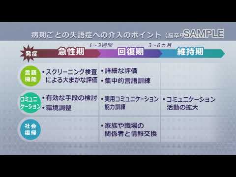 失語症の病態、言語症状、タイプ分類、評価などについて説明し、言語情報処理モデルに基づくリハビリテーションと、磁気刺激療法などについて解説します。