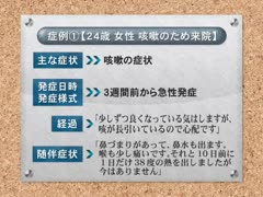 プライマリ・ケア外来において、呼吸器症状・発熱を訴えて来院する患者は多く見られます。この番組では、呼吸器症状・発熱を主訴とする疾患として呼吸器感染症のあらましを確認するとともに、鑑別診断に役立つデータ取得の方法について解説します。さらに実践的な思考法が身につくように、呼吸器症状・発熱を主訴とする3つの症例(かぜ症候群+急性気管支炎、急性咽頭炎、肺炎)について、仮説演繹法による臨床診断推論の具体的な進め方を紹介します。