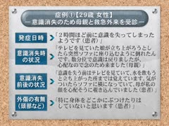 失神は救急外来でよく見られる主訴の1つです。失神をきたす病態は脳全体の一過性低灌流ですが、これとは異なる病態から失神に類似した症状を呈する疾患もあります。このため失神を主訴とする症例の鑑別診断では、まず患者の訴える症状が本当に失神であるかどうか検討することが重要です。この番組では、失神を主訴とする症例で想定される原因疾患のあらましについて確認するとともに、実践的な思考法が身につくよう、失神を主訴とする3つの症例(神経調節性失神、痙攣発作、心原性失神)について、仮説演繹法による臨床診断推論の具体的な進め方を紹介します。