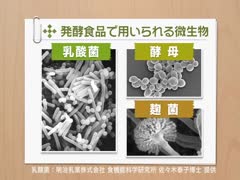 乳酸菌や酵母などを利用して製造される発酵食品、腸内細菌叢の正常化に寄与するプロバイオティクスを説明し、一次代謝産物(乳酸、グルタミン酸)や二次代謝産物(抗生物質、スタチン)などの有用物質生産、遺伝子工学(PCR、遺伝子組換え)などについて解説します。