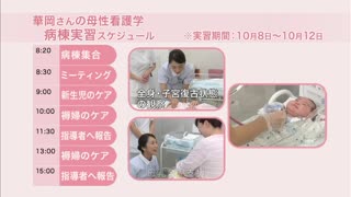 実習4日目の華岡葵(看護学生)さんが、生後4日目の新生児の子宮外生活への適応の支援を行います。看護の視点として、新生児のバイタルサインの手順、大泉門、産瘤や頭血腫の有無、黄疸の観察(経皮ビリルビン計の測定方法、観察時の注意点)、体重測定、生理的体重減少率の計算などについて見ていきます。
